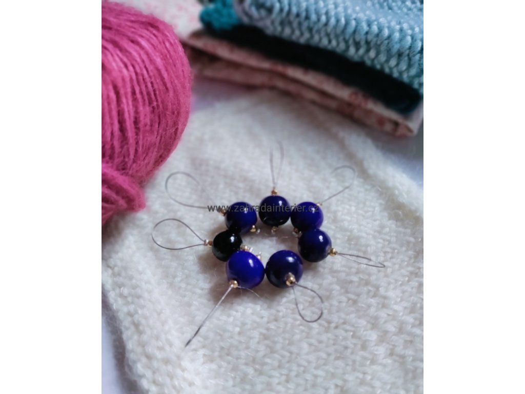 Značky na přízi KnitPro 7 ks modré korálky
